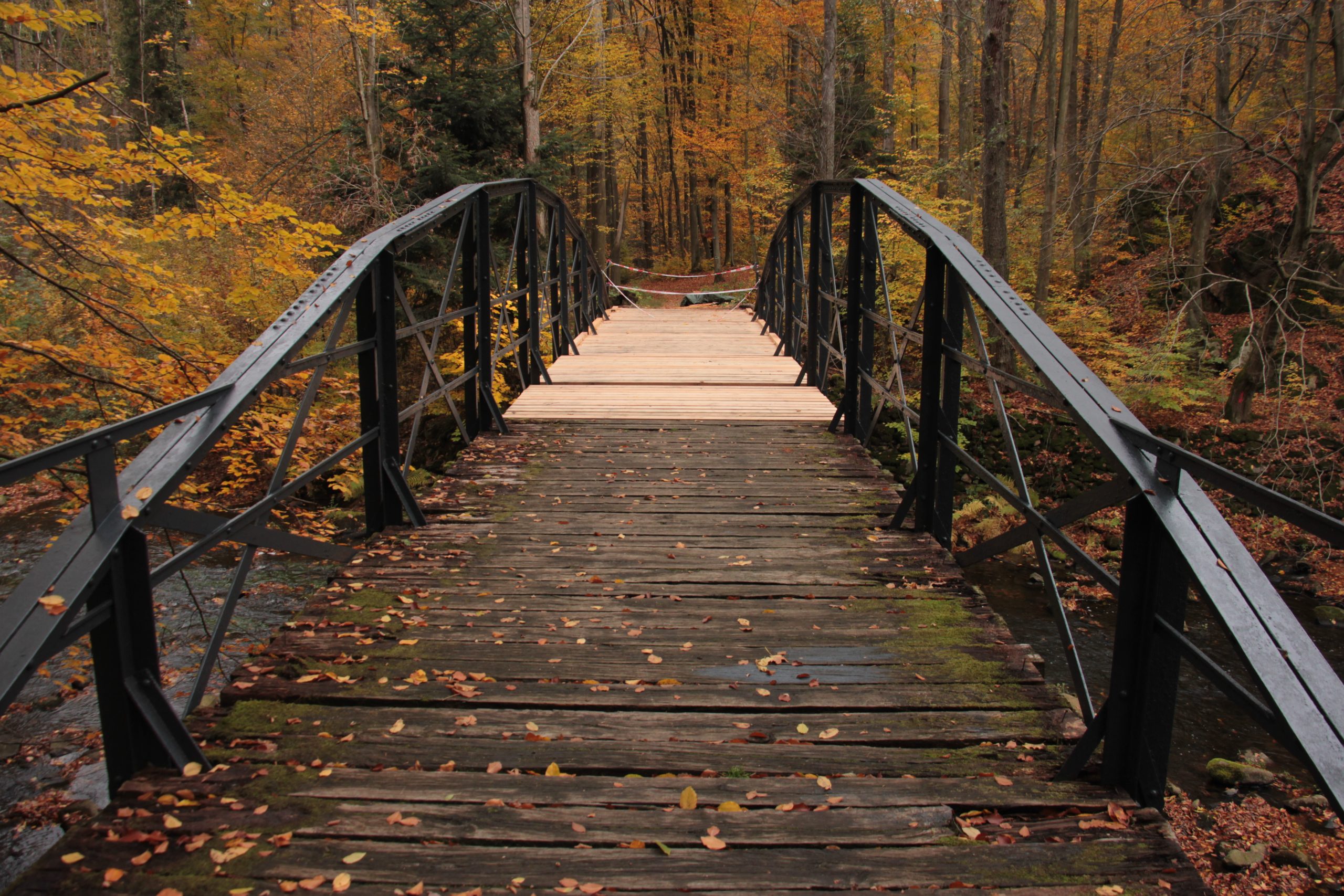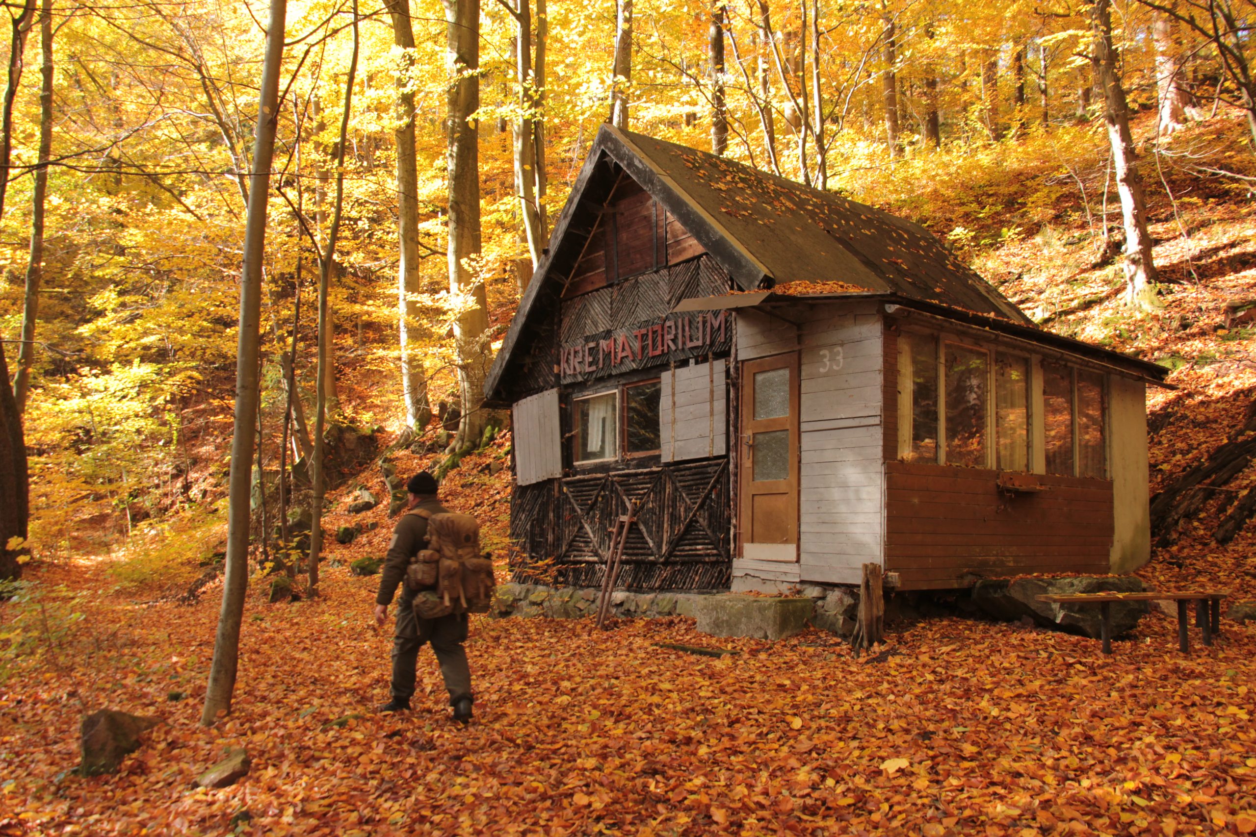 téměř 32 ha, z kterého je přiváděna přes 3 km dlouhým přivaděčem do elektrárny Práčov. Kromě energetických účelů je přehrada zdrojem pitné vody pro část Pardubického kraje. Hladina je viditelně o metr, možná i víc nižší. Pod hrází je vody taky málo a průtok je minimální. Cesta podél Chrudimky nás přivedla k první trempský chatě s příznačným jménem „Peřej 1“. Po 100metrech je druhá chata, vypadající opuštěně, s názvem „Krematorium“. Až sem by se dalo zajet autem, ale dál už je jenom stezka, teď na podzim zapadaná listím, občas i padlým kmenem, o kamenech nemá cenu psát, jsou na ní malý, velký i střední, musíme je překračovat i přelejzat a jsou občas i slizký. Stezka jde nahoru a pak zase dolu k řece. Na příhodných místech jsou trempský chaty, vesměs hodně opotřebený. Po čtyřech kilometrech od přehrady se u jedný slušný chaty v před Peklí zastavujeme. Je jedna hodina, to chce oběd. Chata má verandu, pod verandou ohniště a za verandou nasekaný suchý dříví. Půjčujeme si pár polínek, rozděláváme oheň, na kterým si vaříme konzervy. Na liháčích si vaříme čaj. Za necelou hodinku máme zabaleno a jdeme dál. Nasledující chaty jsou všecky trochu víc hogo-fogo. U Hradišťských vodopádů potkáváme dva trempíky? Těžko povědět, ale bágly mají. Taky prej maj kilo hovězího a budou si dělat guláš. Bohužel jdou opačným směrem. Prohlížíme si kapkovej vodopád o kterým se píše: „Tři metry vysoký dobře přístupný vodopád na přítoku Chrudimky.“ Pokračujeme na zelenou značku, vedoucí skrz chatovou osadu Peklo. V některých chatách je i osazenstvo a kouří se z